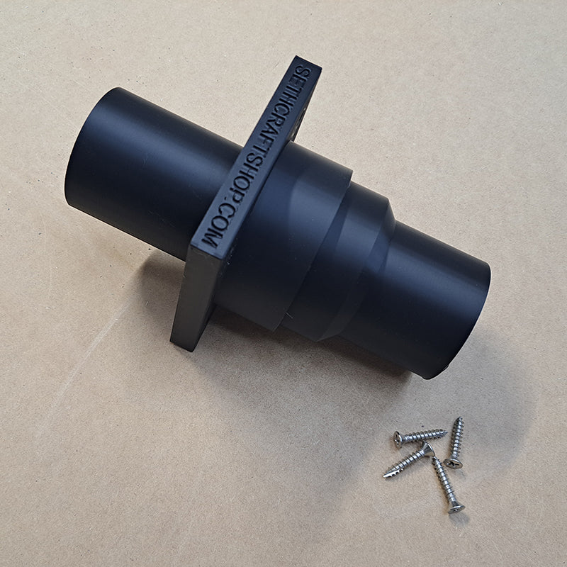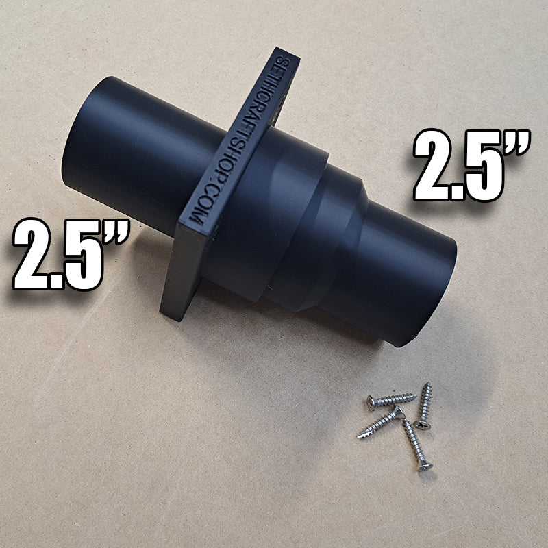 The CNC Enclosure Pass Through Port is a practical and efficient accessory designed to streamline dust collection during machining operations. Crafted to seamlessly integrate into your CNC enclosure, this pass through port provides a secure and convenient connection point for your shop vacuum or dust extraction system. By attaching your vacuum hose to the port, it effectively captures and removes dust, chips, and debris directly at the source, maintaining a cleaner workspace and improving air quality. Its durable construction ensures a tight seal and long-lasting performance, making it an essential addition for any CNC operator seeking enhanced dust management and a safer, more organized workshop environment. Use a common 2.5" shop vacuum hose to connect to both sides of the Pass Through Port to allow dust to be extracted from the work area.