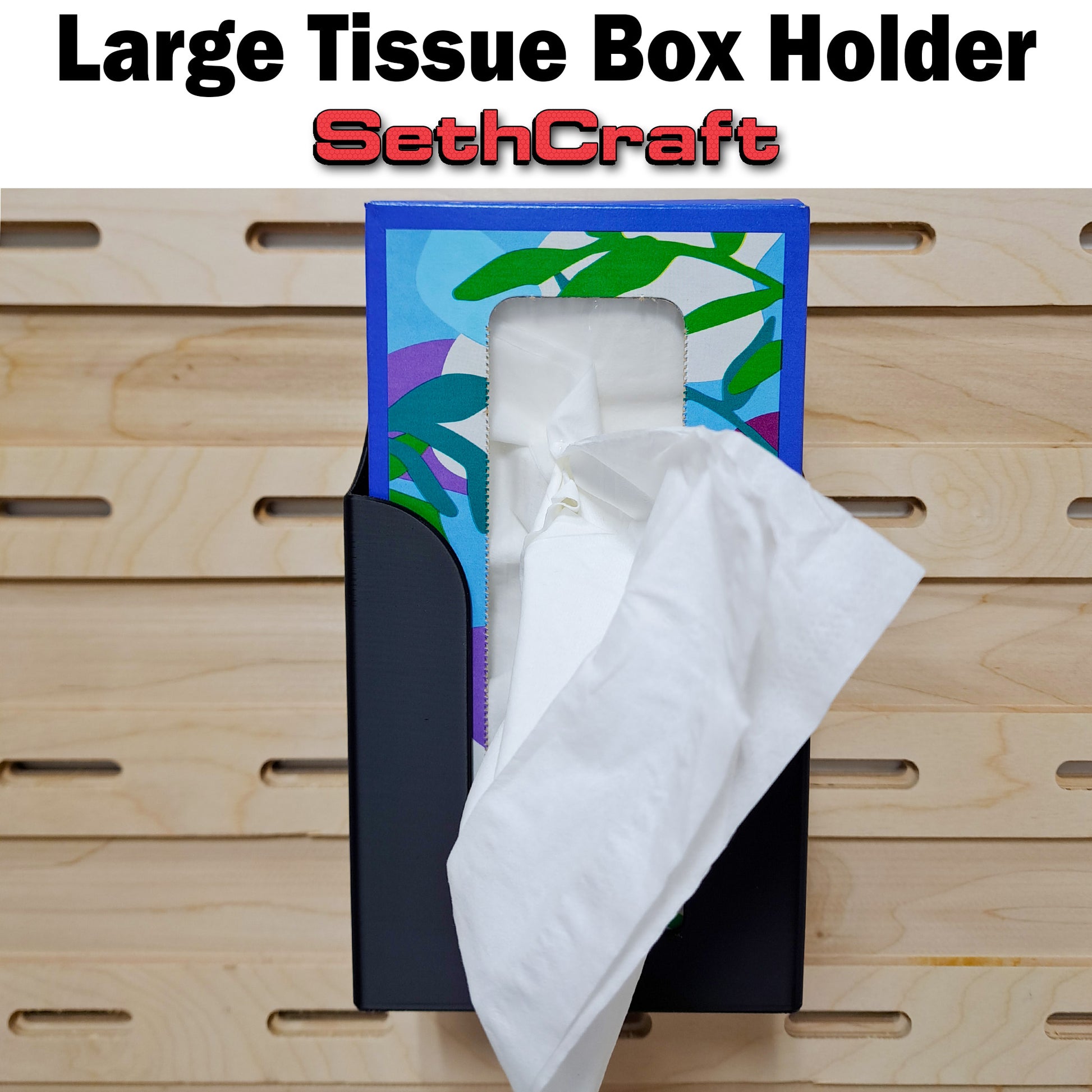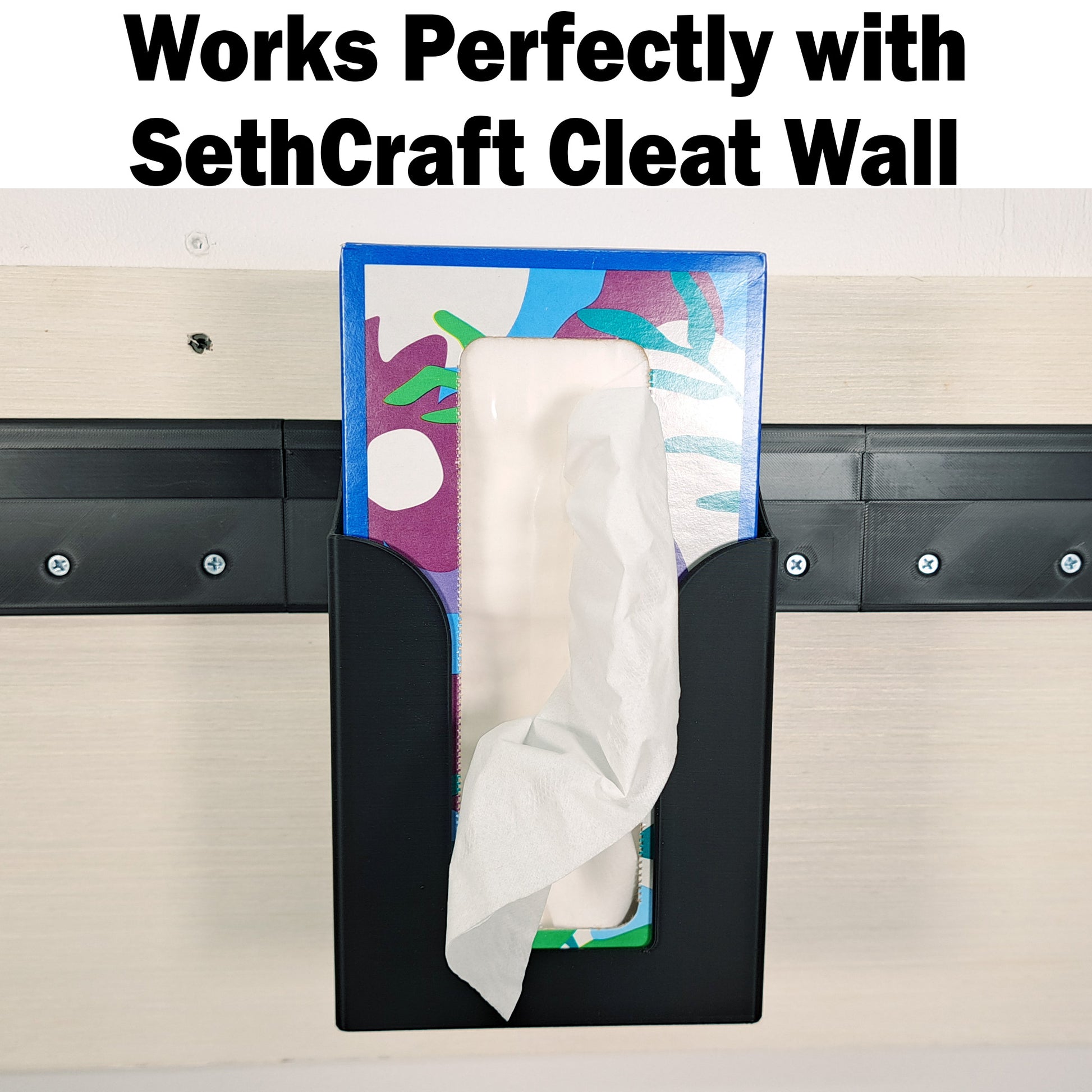 Whether you're organizing a workshop, office, studio or enhancing your home’s aesthetic, this Large Tissue Box Holder delivers stability and style. The optional flat wall mount bracket provides a non French Cleat mounting Alternative. Upgrade your storage today with this reliable, modular solution!