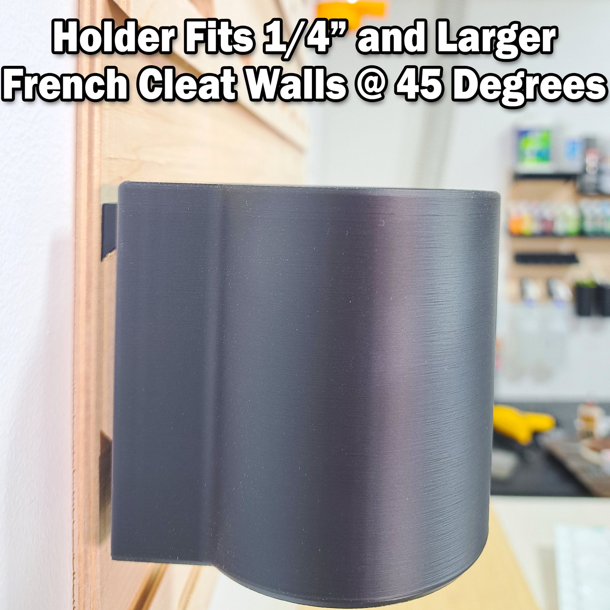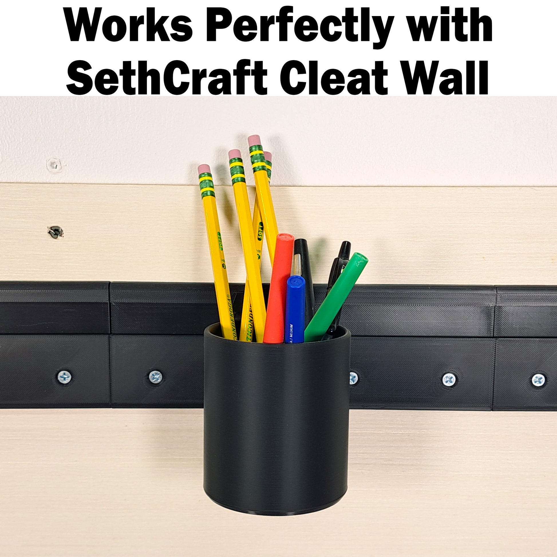 Maximize your storage with the sleek and sturdy French Cleat Modular Short Pen/Pencil Holder, designed for seamless integration with any French Cleat storage system from 1/4" and up. Crafted from high-quality, durable materials, this Short Cup Pen and Pencil Holder offers a robust solution for organizing your any item that fits in a 2.7" opening. This Short Cup can hold more than just Pens and Pencils, Great for many items. Perfect for your garage, workshop, Studio, or home.